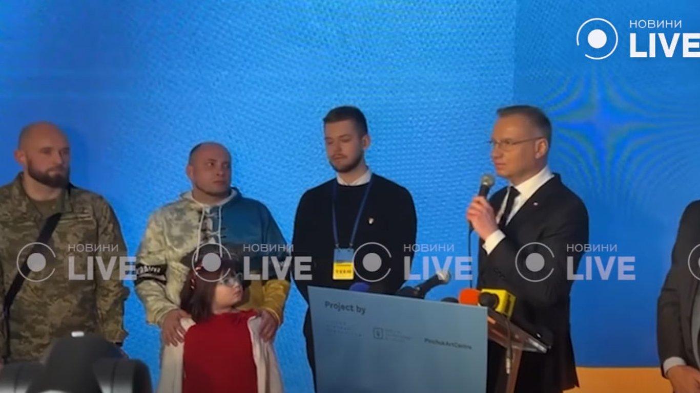 "Не международные силы защищают Украину, и не миллион солдат со всего мира. Это украинские воины, свои воины, защищающие свою страну при поддержке небольшого количества волонтеров из других стран. С одной стороны, эта выставка — дань памяти героям Украины и призыв ко всему миру по дальнейшей поддержке", — сказал Анджей Дуда.